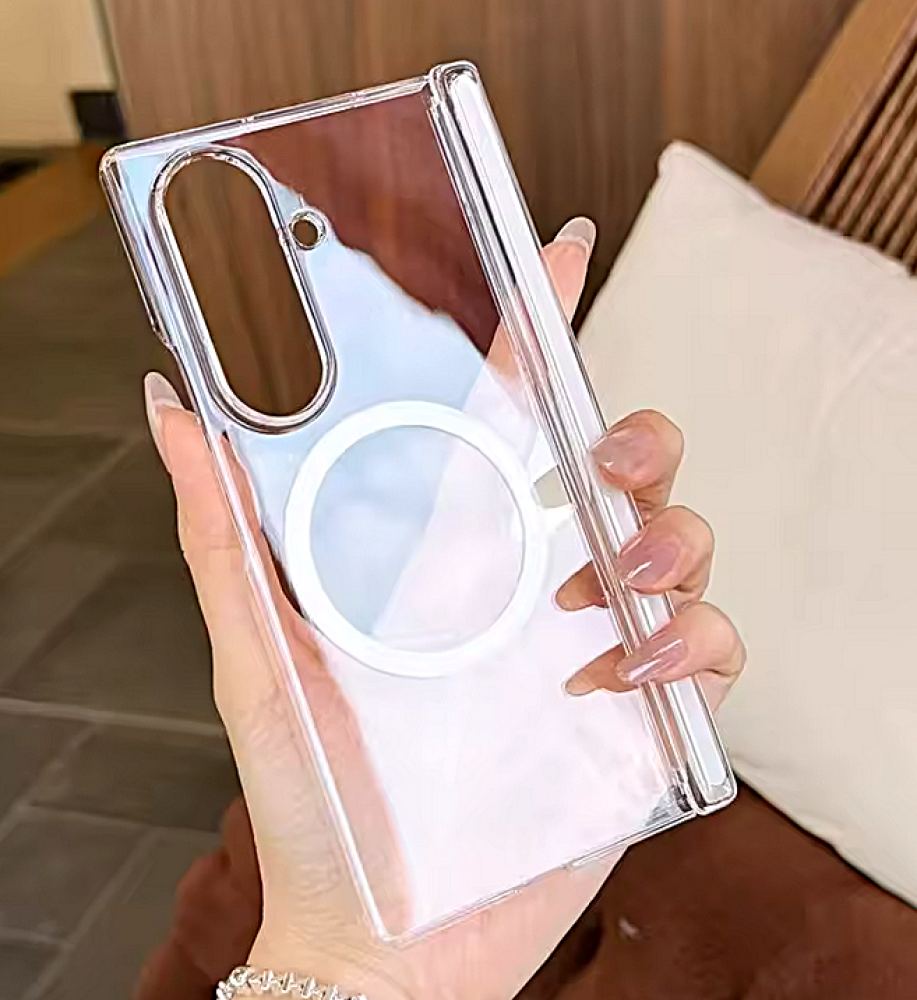 غطاء حماية شفاف صلب — الحل المثالي لمن يريدون إبراز شكل وألوان هاتف Galaxy Z Fold مع حماية عملية ودعم للشحن اللاسلكي المغناطيسي.