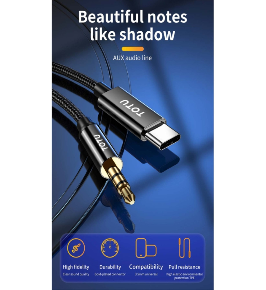 تصميم توتو EAUC-031 كابل صوت سريع من السلسلة 8 إلى 3.5 ملم إيه يو إكس، الطول: 1 متر (أسود)