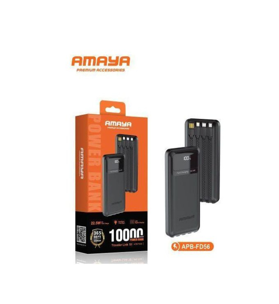 أمايا APB-FD50 باور بانك سعة 10000mAh شحن سريع PD20W • 22.5W • كابلات تايب سي و ايفوون مدمجة • منافذ متعددة