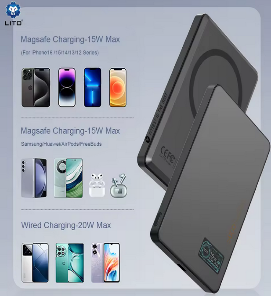LITO LP07 — شحن مغناطيسي 15W في حجم جيب
