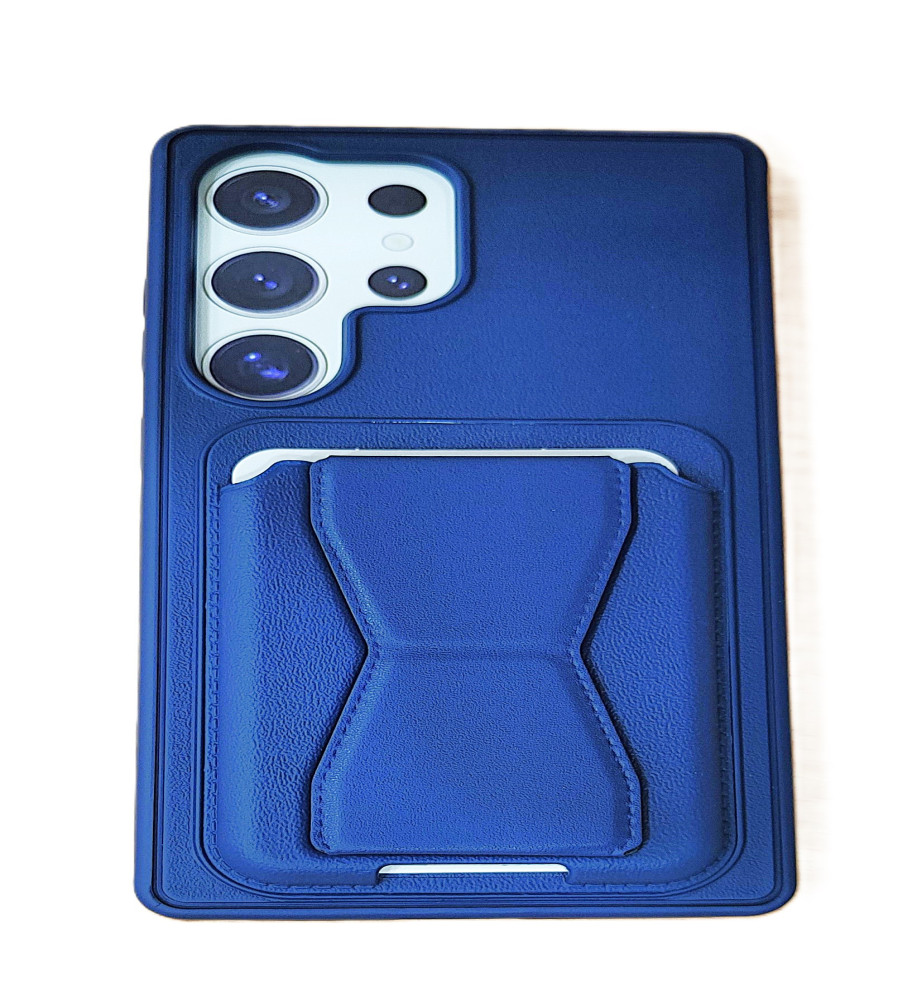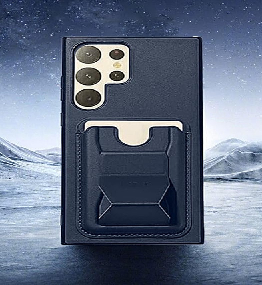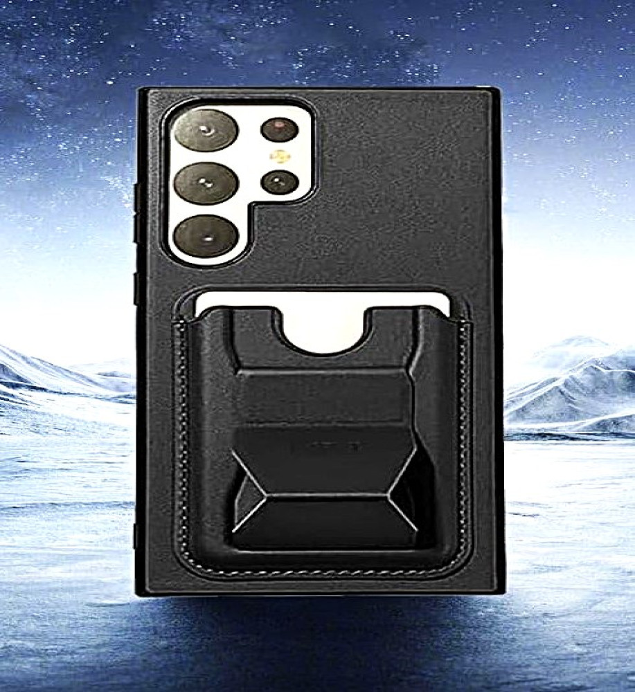 Practical and stylish case: leather-like polyethylene material, raised protective edges, built-in card wallet and hidden kickstand compatible with Samsung Phone S25 Ultra.
