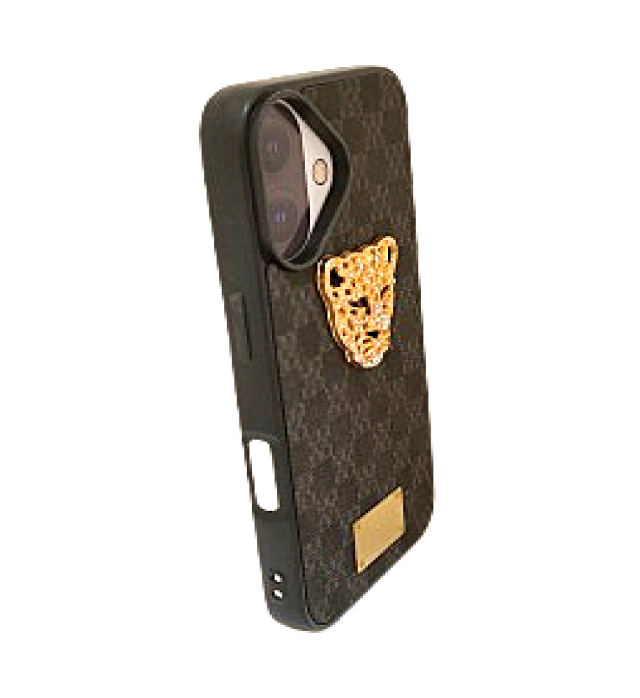 The back of the cover is adorned with a stylish gold emblem and sparkling studs, along with a square gold piece in the center that displays the word "Classic" as a watermark when light reflects off it, giving your phone a distinctive, luxurious look.