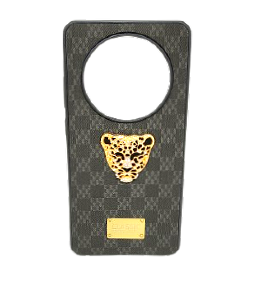 The back of the cover is adorned with a stylish gold emblem and sparkling studs, along with a square gold piece in the center that displays the word "Classic" as a watermark when light reflects off it, giving your phone a distinctive, luxurious look.