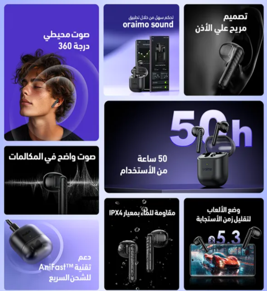 Discover true audio freedom with the FreePods Neo OTW-330S — up to 50 hours of playback, Sound360 surround sound for an immersive listening experience, 6 microphones for clear calls, fast charging, and IPX4 sweat resistance. They're the perfect earbuds for everyday life, workouts, and commuting.