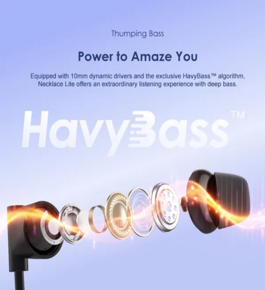 Excellent sound quality — The 10 mm dynamic driver, powered by the HavyBass™ algorithm, delivers a powerful bass experience, perfect for music lovers and those who appreciate deep bass.
