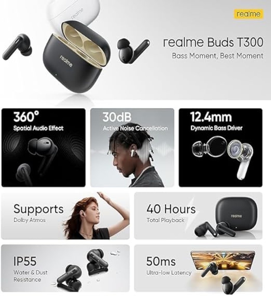 - Up to 40 hours of total playback with fast charging support, 10-minute charge for 7 hours of playback.