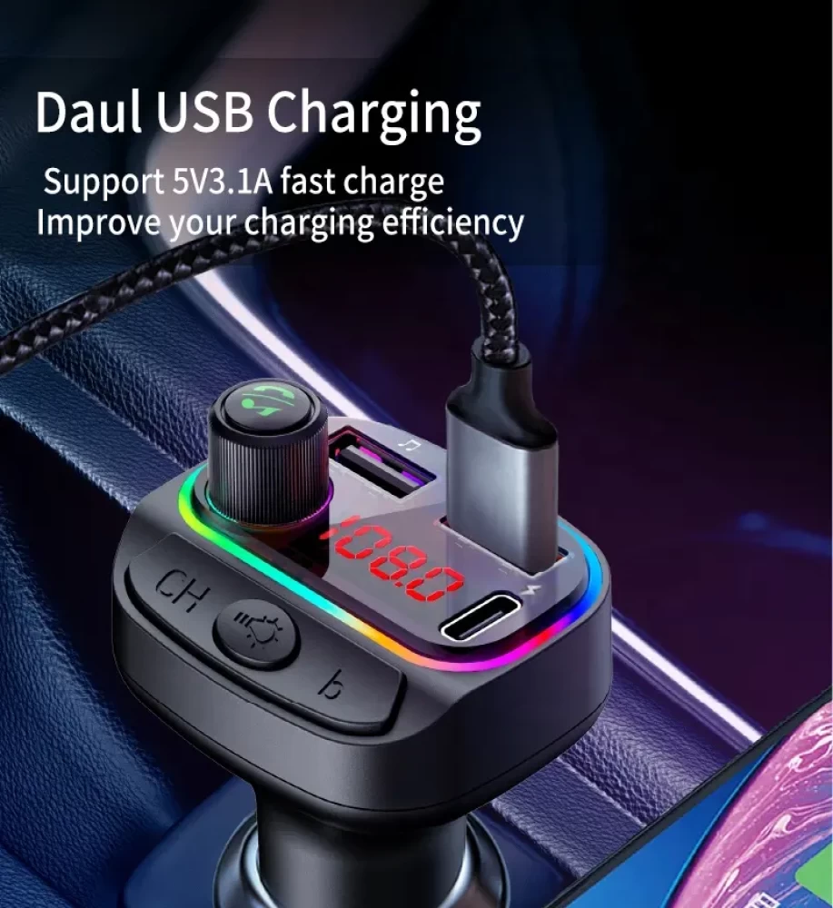 Colorful Lights Car Bluetooth Transmitter Fm 3.1A Car Usb Charger Multifunction Car Mp3 Player