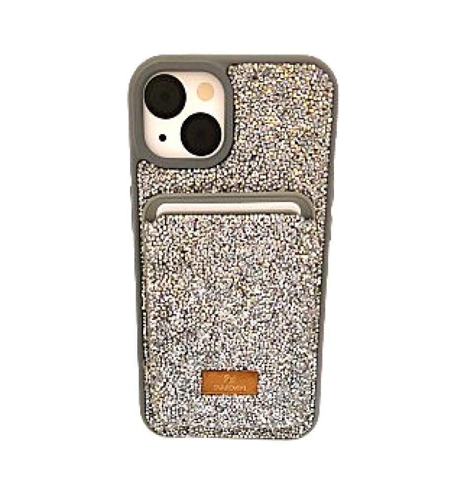 جراب SWAROVSKI مغطي بالإستراس مع ألوان جذابة و حافظة بطاقات مغناطيسية بالإضافة إلي دعم الشحن اللاسلكي Mage Safe متوافق مع موبايل ايفون 15
