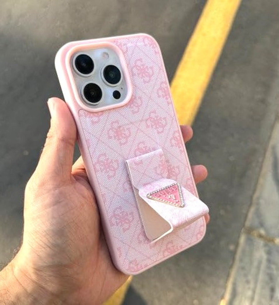 Guess جراب حماية و لمسة فخمة, أناقة و متانة مع ماسكة ذكية, حماية من السقوط, شعار إستراس بارز أنيق, تركيب سهل و سطح مانع للإنزلاق موبايل ايفون 16