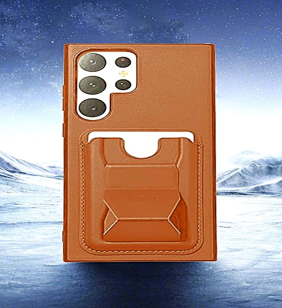 مزوّد بمحفظة مدمجة تتسع للبطاقات، وتحتوي على قطعة قابلة للطي تعمل كمسند قوي يدعم الهاتف بزاوية مشاهدة مريحة — دون الحاجة لإخراج البطاقة أو أي أجزاء من الجراب.