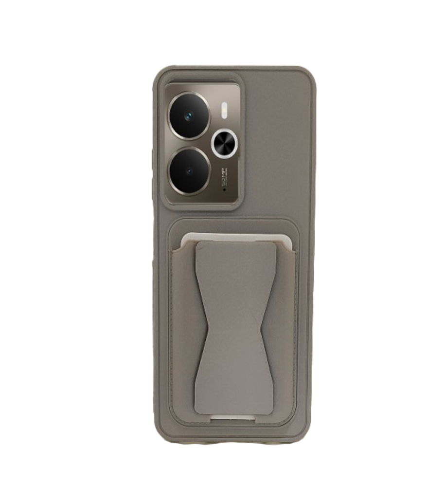 جراب عملي وأنيق خامة تشبه الجلد من بولي إيثيلين، حواف واقية بارزة، محفظة كروت مدمجة ومسند مخفي متوافق مع هاتف ريلمي 14T