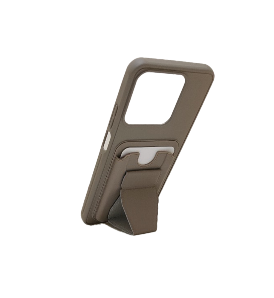 مزوّد بمحفظة مدمجة تتسع للبطاقات، وتحتوي على قطعة قابلة للطي تعمل كمسند قوي يدعم الهاتف بزاوية مشاهدة مريحة — دون الحاجة لإخراج البطاقة أو أي أجزاء من الجراب.
