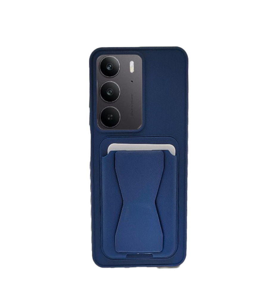 جراب عملي وأنيق خامة تشبه الجلد من بولي إيثيلين، حواف واقية بارزة، محفظة كروت مدمجة ومسند مخفي متوافق مع هاتف ريلمي C75