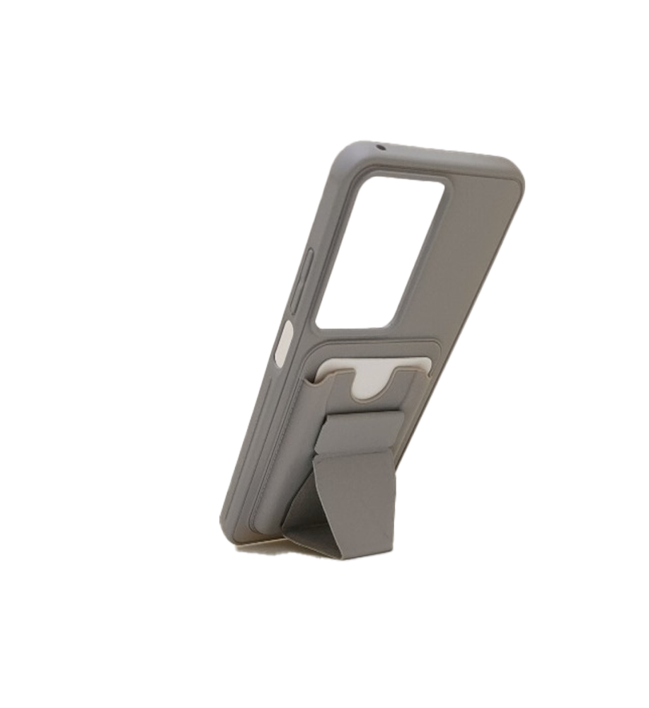 مزوّد بمحفظة مدمجة تتسع للبطاقات، وتحتوي على قطعة قابلة للطي تعمل كمسند قوي يدعم الهاتف بزاوية مشاهدة مريحة — دون الحاجة لإخراج البطاقة أو أي أجزاء من الجراب.