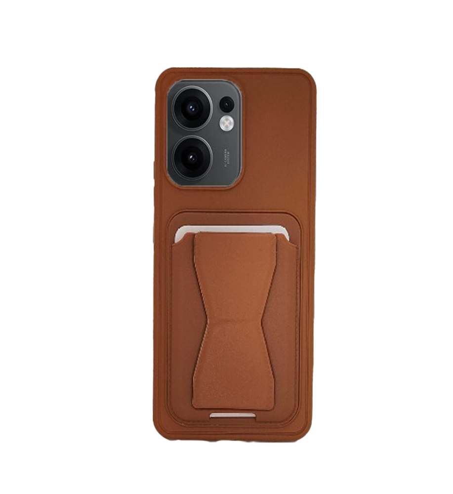 جراب عملي وأنيق خامة تشبه الجلد من بولي إيثيلين، حواف واقية بارزة، محفظة كروت مدمجة ومسند مخفي متوافق مع هاتف اوبوو رينو 13