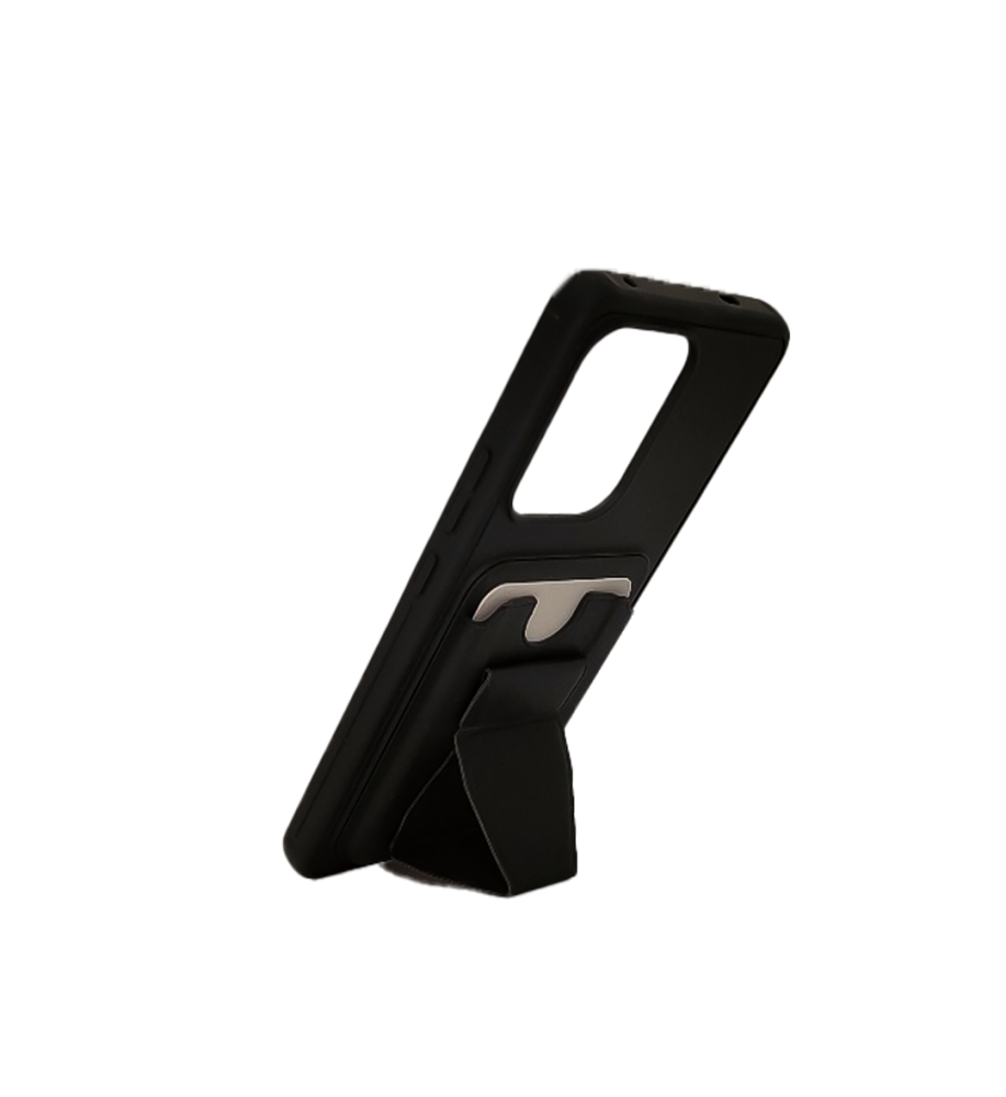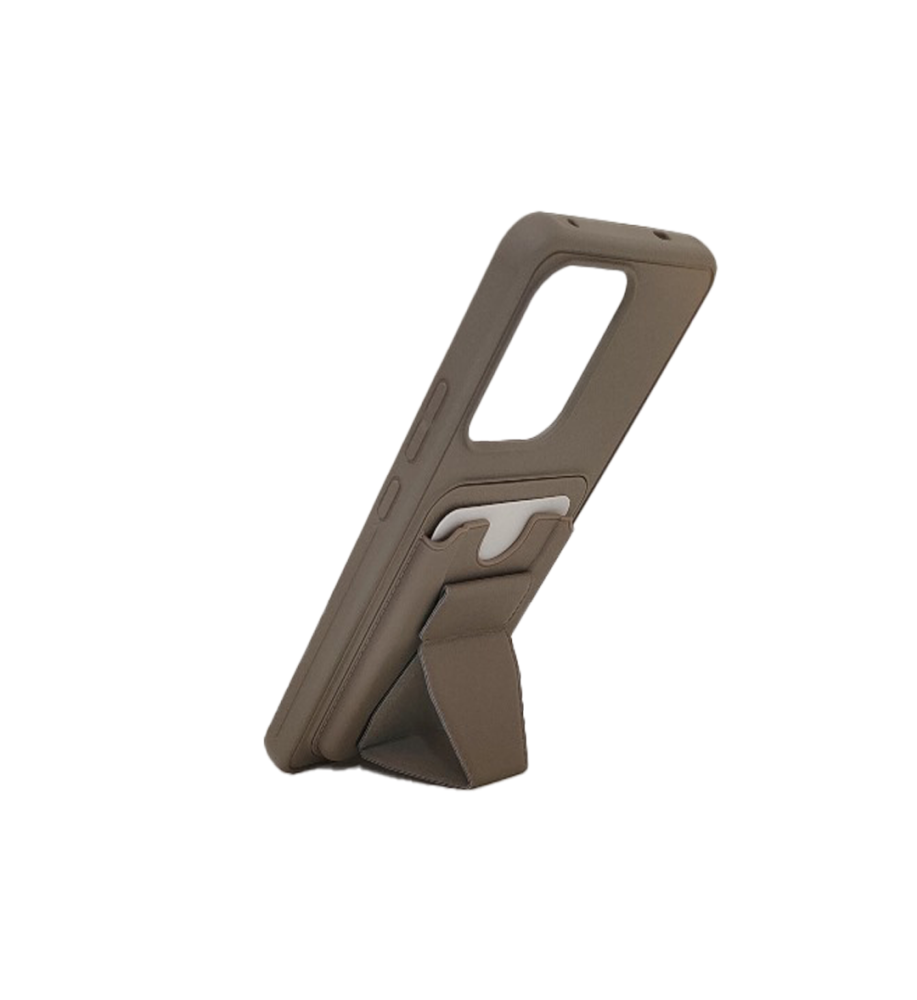 مزوّد بمحفظة مدمجة تتسع للبطاقات، وتحتوي على قطعة قابلة للطي تعمل كمسند قوي يدعم الهاتف بزاوية مشاهدة مريحة — دون الحاجة لإخراج البطاقة أو أي أجزاء من الجراب.