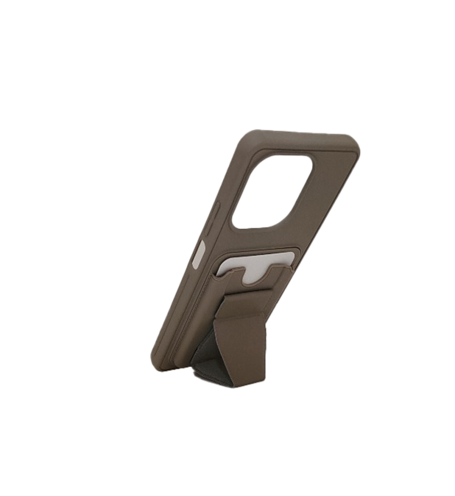 مزوّد بمحفظة مدمجة تتسع للبطاقات، وتحتوي على قطعة قابلة للطي تعمل كمسند قوي يدعم الهاتف بزاوية مشاهدة مريحة — دون الحاجة لإخراج البطاقة أو أي أجزاء من الجراب.