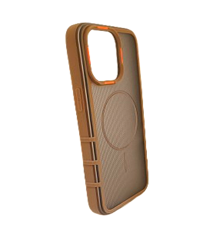إطار بلون سائد ظهر الغطاء لكن أغمق بنحو 4 درجات، مراعى فيه حواف بارزة حول الكاميرات والإطار الأمامى عند الشاشة لزيادة الحماية في المناطق الحسّاسة.