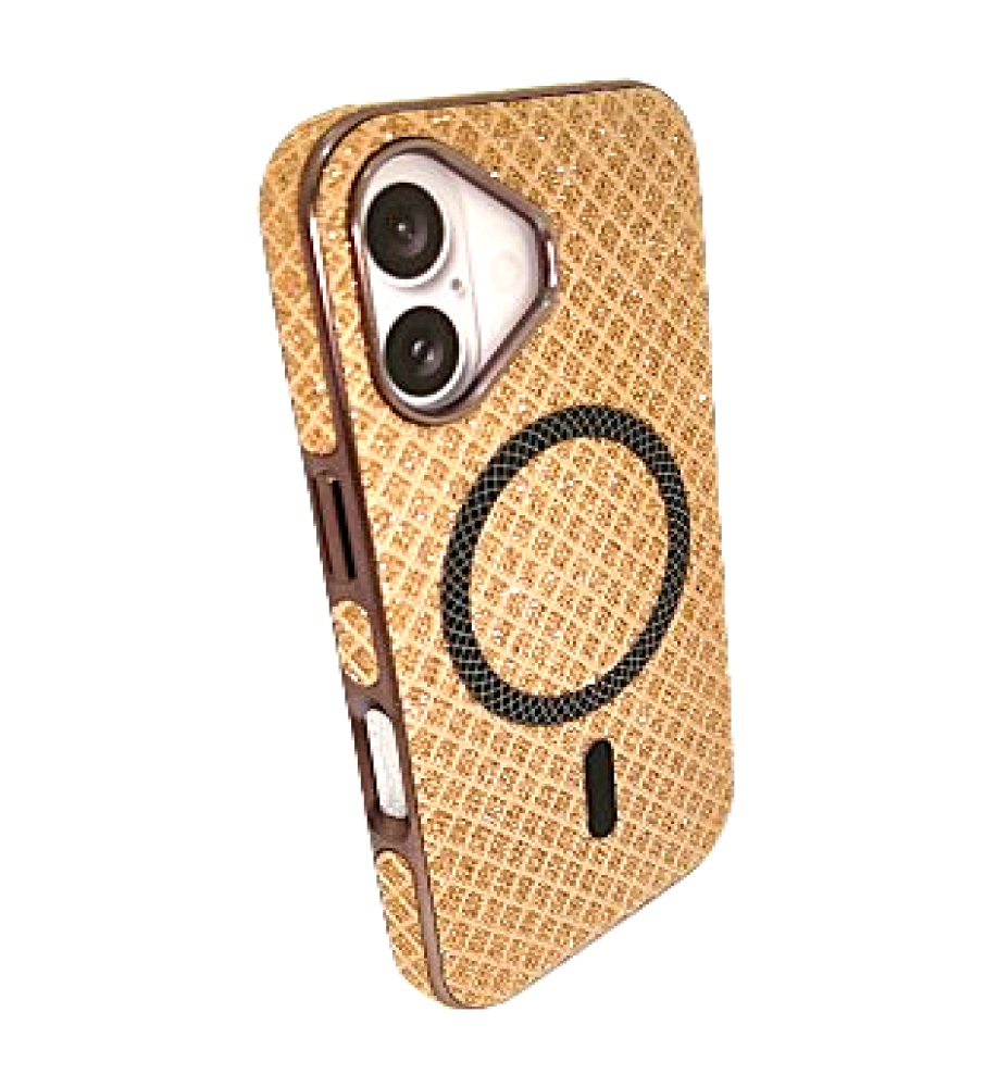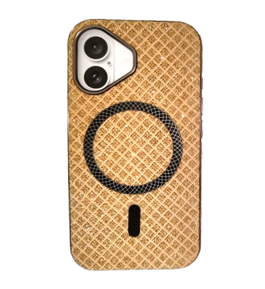 جراب صُمم ليجمع بين الأناقة والحماية العملية: استراس ناعم يلمع بانعكاس الضوء مثل فساتين السواريه لكنه خفيف الملمس ولا يعيق القبضة.