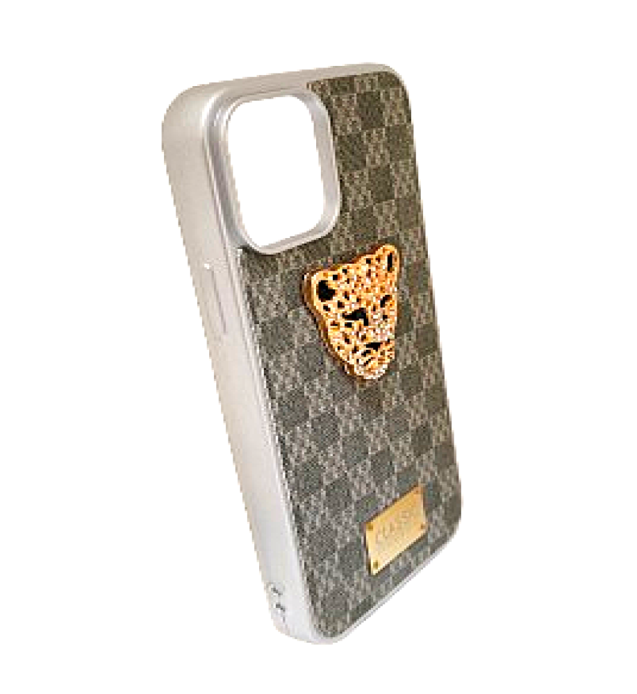 ظهر الغطاء مزين برمز ذهبي أنيق وفصوص لامعة مع قطعة مربعة ذهبية في المنتصف تظهر كلمة "Classic" كعلامة مائية عند انعكاس الضوء، لتمنح الموبايل طابع فاخر مميز.