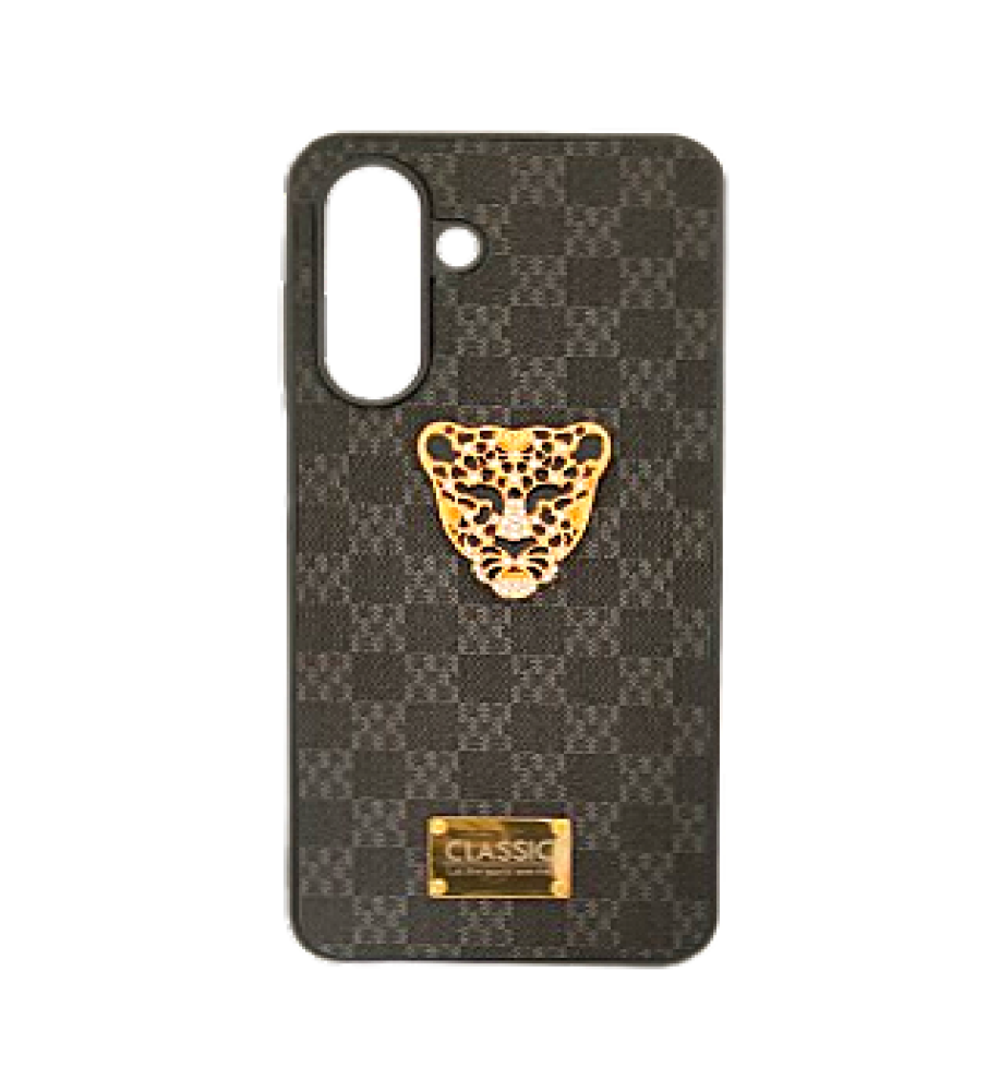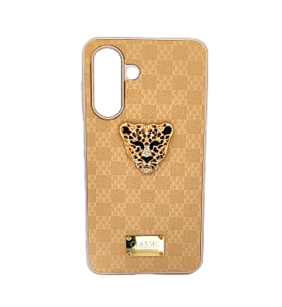 ظهر الغطاء مزين برمز ذهبي أنيق وفصوص لامعة مع قطعة مربعة ذهبية في المنتصف تظهر كلمة "Classic" كعلامة مائية عند انعكاس الضوء، لتمنح الموبايل طابع فاخر مميز.
