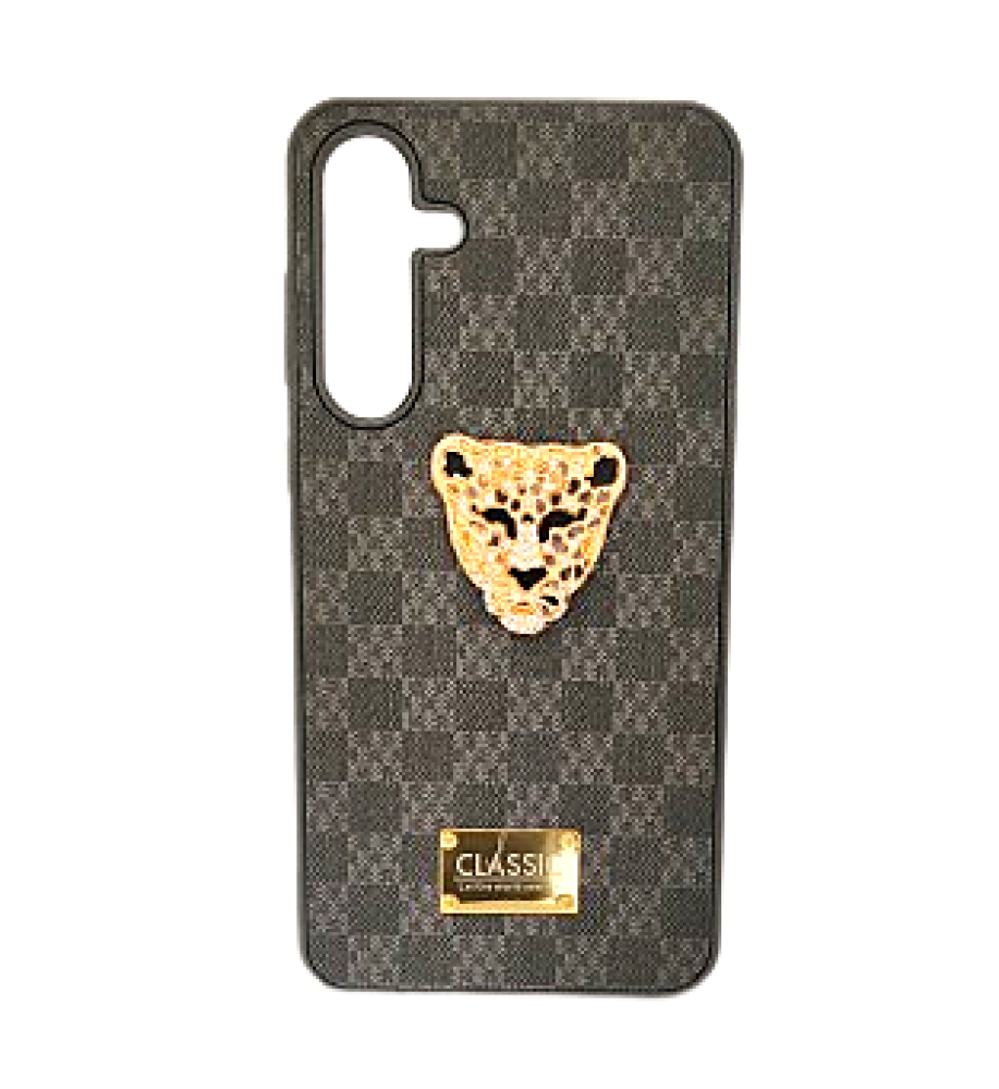ظهر الغطاء مزين برمز ذهبي أنيق وفصوص لامعة مع قطعة مربعة ذهبية في المنتصف تظهر كلمة "Classic" كعلامة مائية عند انعكاس الضوء، لتمنح الموبايل طابع فاخر مميز.