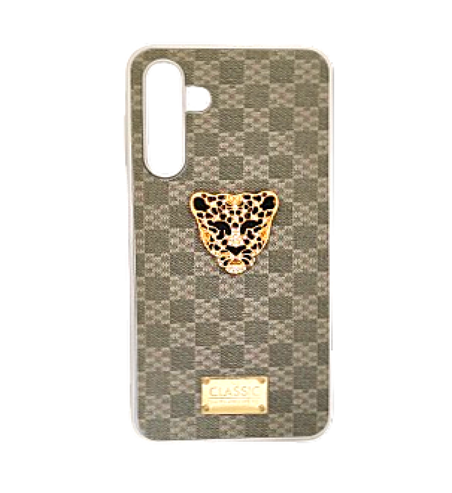 ظهر الغطاء مزين برمز ذهبي أنيق وفصوص لامعة مع قطعة مربعة ذهبية في المنتصف تظهر كلمة "Classic" كعلامة مائية عند انعكاس الضوء، لتمنح الموبايل طابع فاخر مميز.