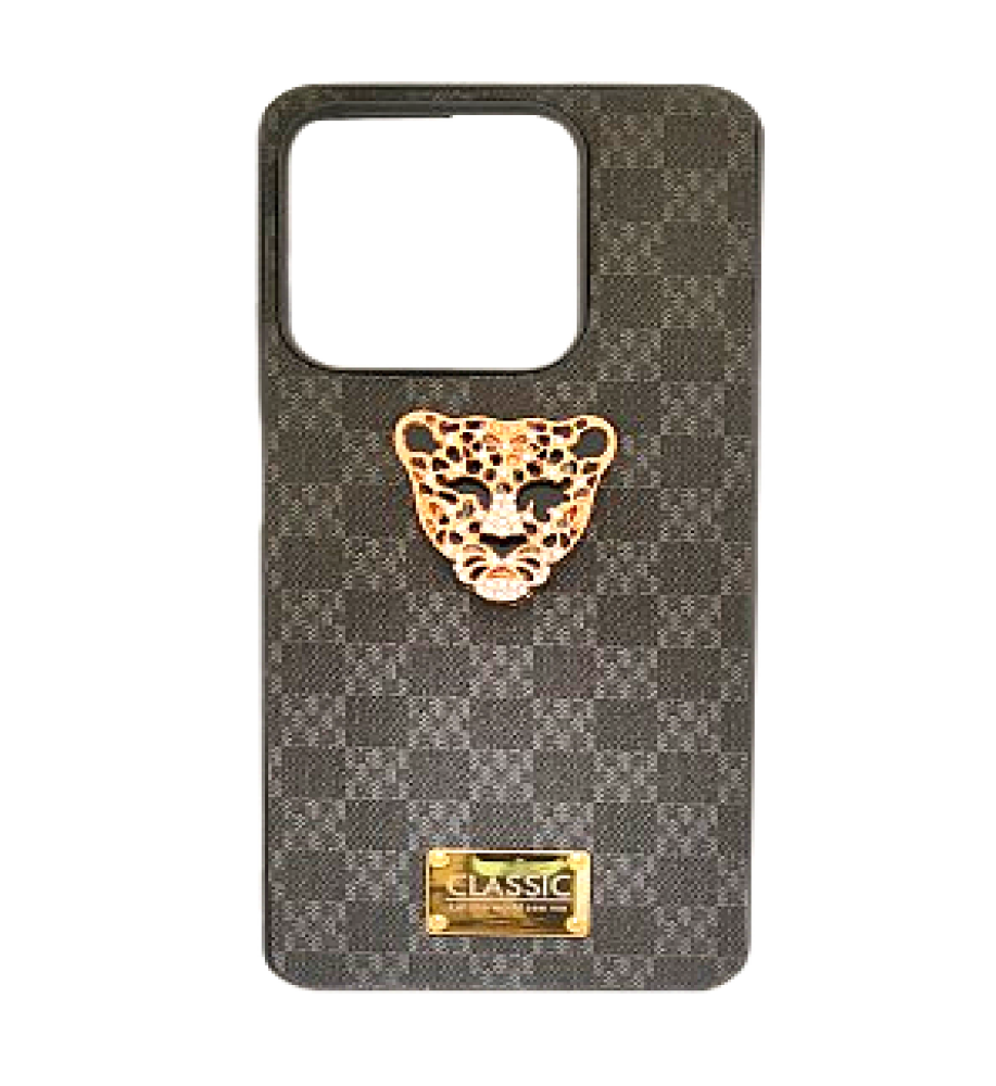 ظهر الغطاء مزين برمز ذهبي أنيق وفصوص لامعة مع قطعة مربعة ذهبية في المنتصف تظهر كلمة "Classic" كعلامة مائية عند انعكاس الضوء، لتمنح الموبايل طابع فاخر مميز.