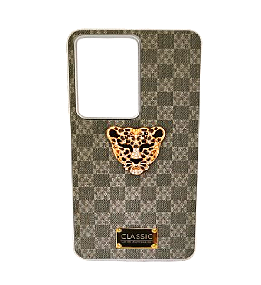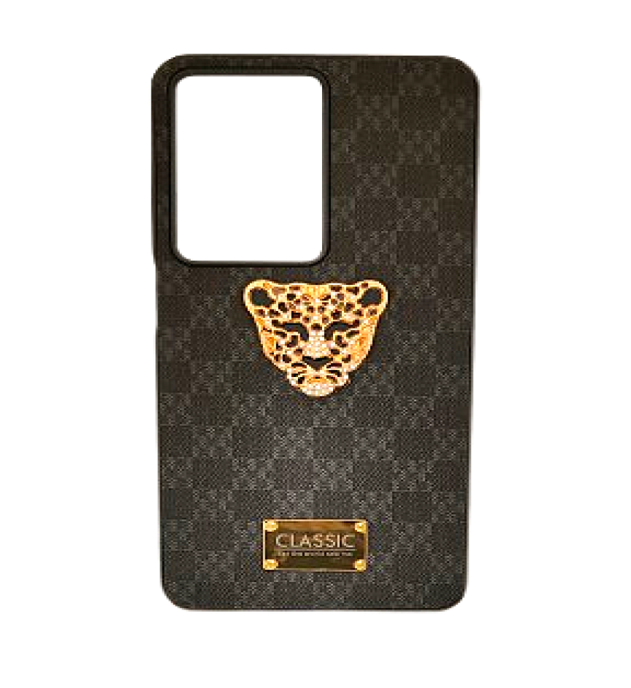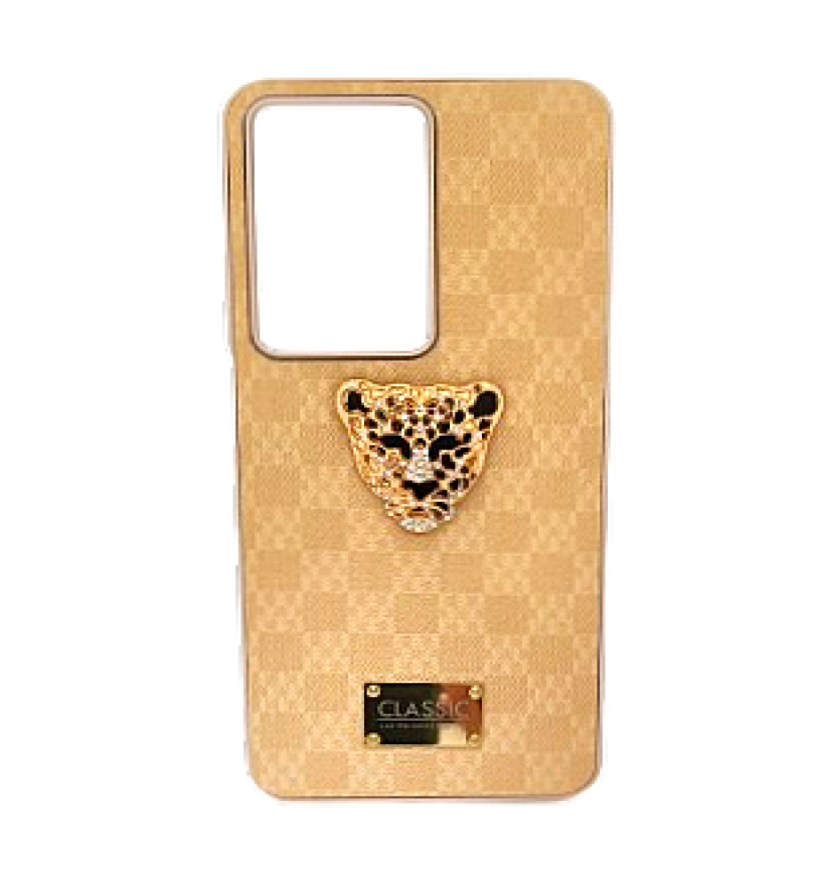 ظهر الغطاء مزين برمز ذهبي أنيق وفصوص لامعة مع قطعة مربعة ذهبية في المنتصف تظهر كلمة "Classic" كعلامة مائية عند انعكاس الضوء، لتمنح الموبايل طابع فاخر مميز.
