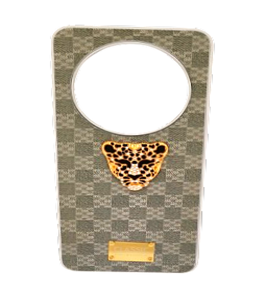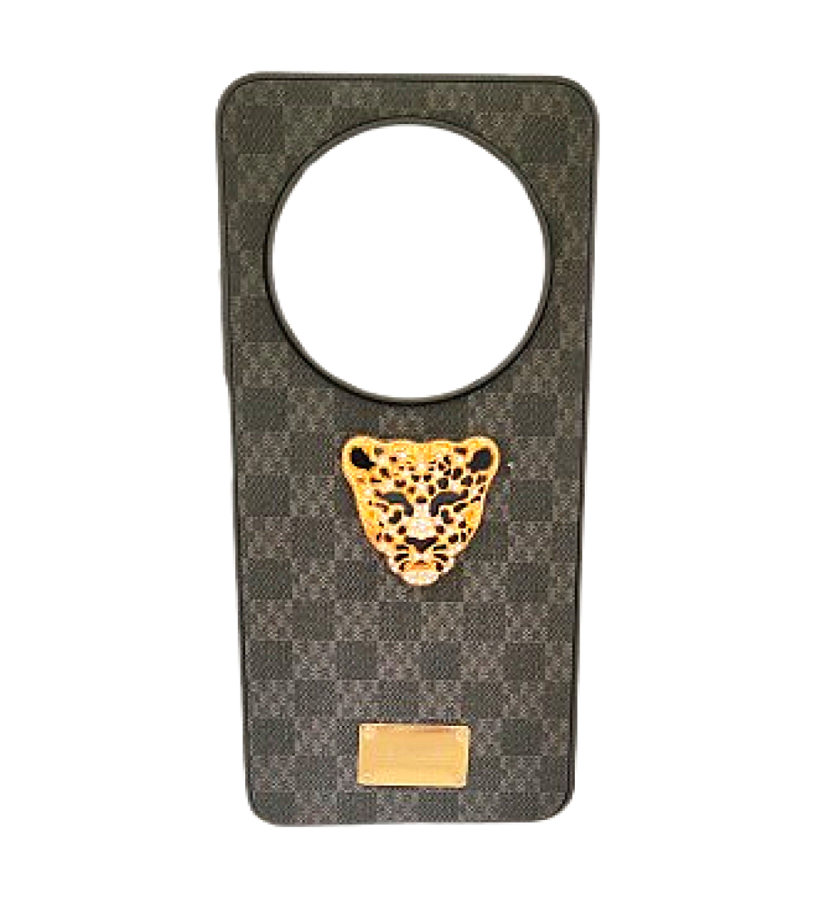 ظهر الغطاء مزين برمز ذهبي أنيق وفصوص لامعة مع قطعة مربعة ذهبية في المنتصف تظهر كلمة "Classic" كعلامة مائية عند انعكاس الضوء، لتمنح الموبايل طابع فاخر مميز.
