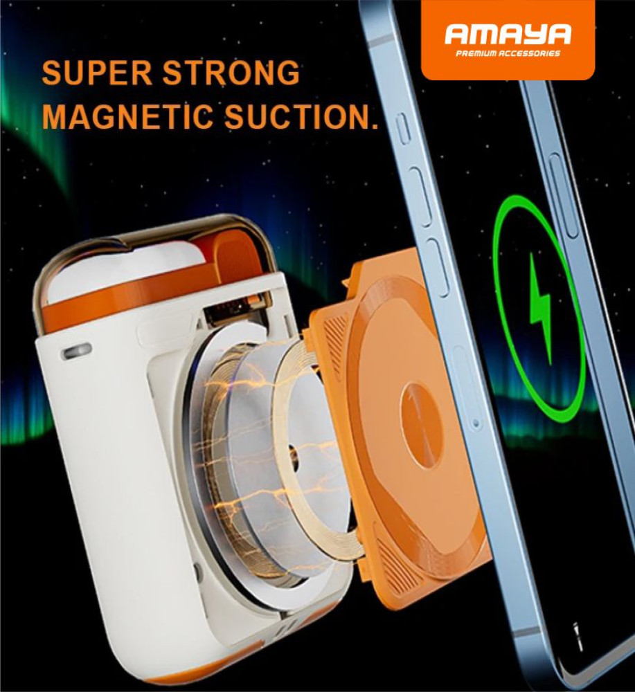 امايا باور بانك APB-WFD36 بسعة 10000 مللي أمبير، وشحن سلكي بقوة 22.5 وات، وشحن لاسلكي بقوة 15 وات.