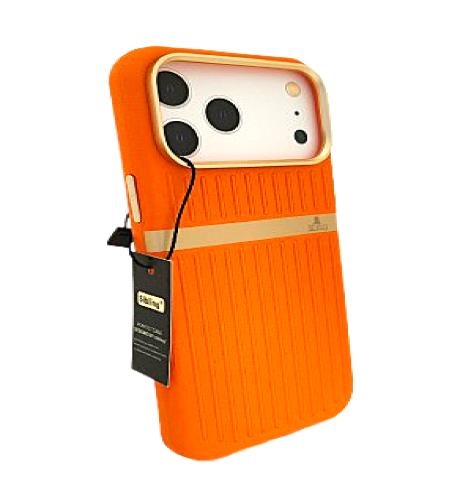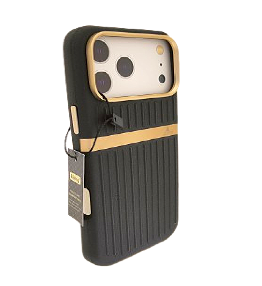 جراب شيك و حماية مع حواف مرتفعة ضد الصدمات، خامة متينة ومربع كاميرا ذهبي تركيب محكم ومظهر فاخر عملي متوافق مع ايفون 17 برو ماكس