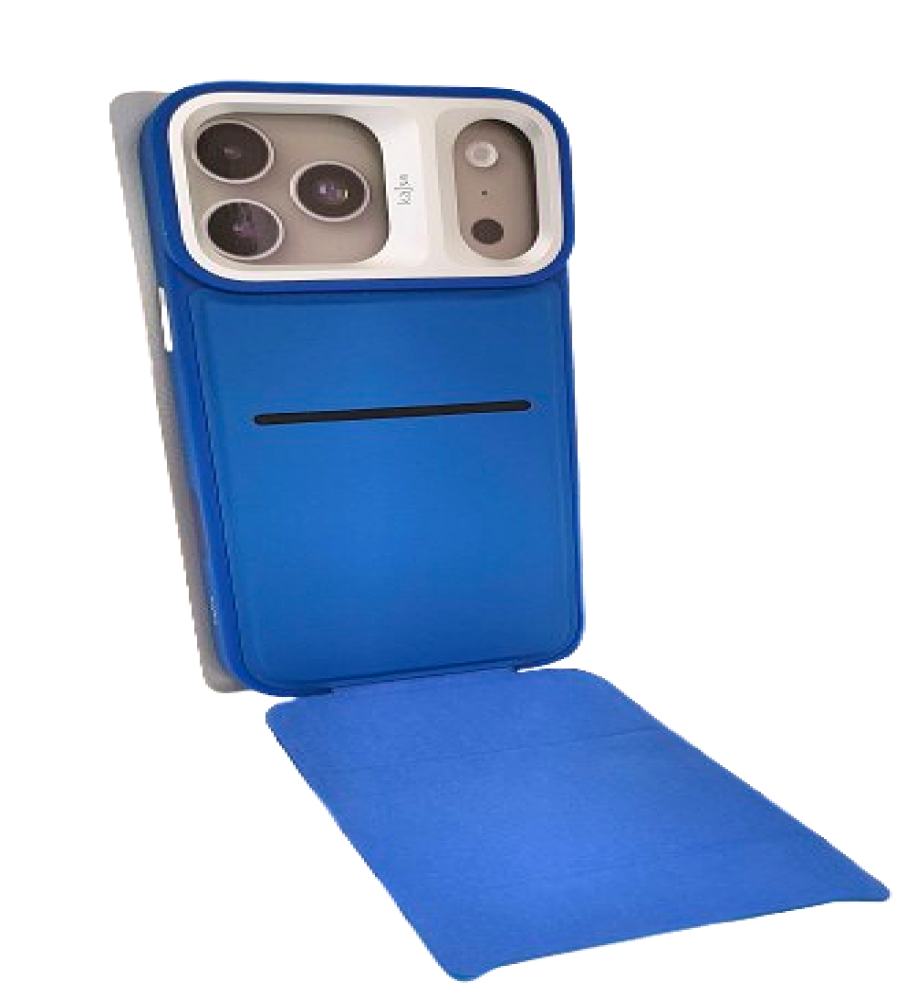 جراب ايفون مزود بـ قطعة قابلة للطي بتصميم ثلاثي تتيح استخدامه كمسند ثابت و جيب مخفي داخل الجراب لحفظ الكروت، خامات قوية مقاومة للصدمات، و بروز لمربع الكاميرات حماية ولمسة تصميم جذابة ل ايفون 17 برو ماكس