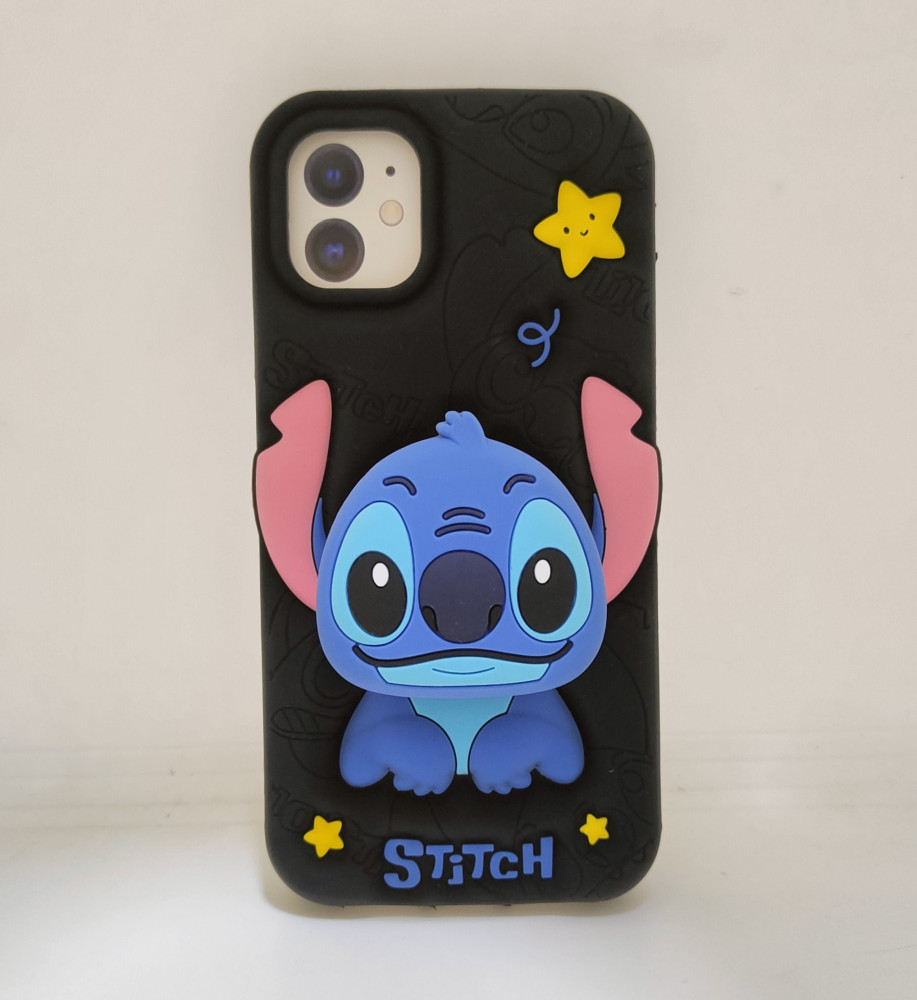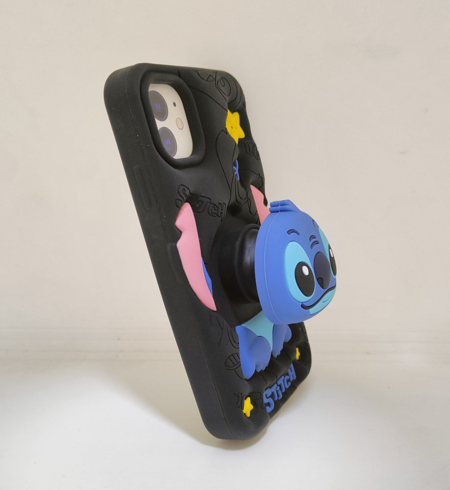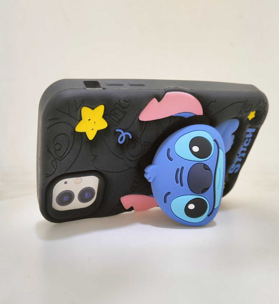 جراب سليكون مع بوب سوكيت حماية من الصدمات مع اشكال استيتش 3D متوافق مع ايفون 11