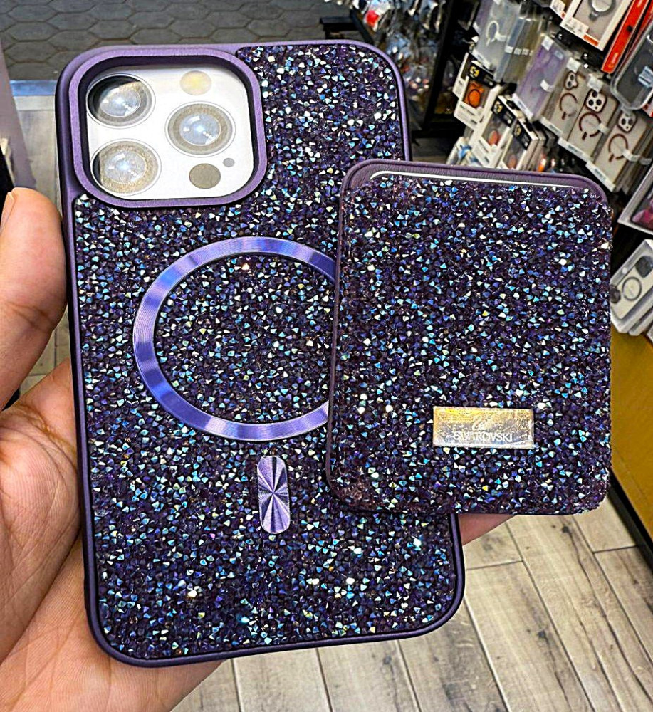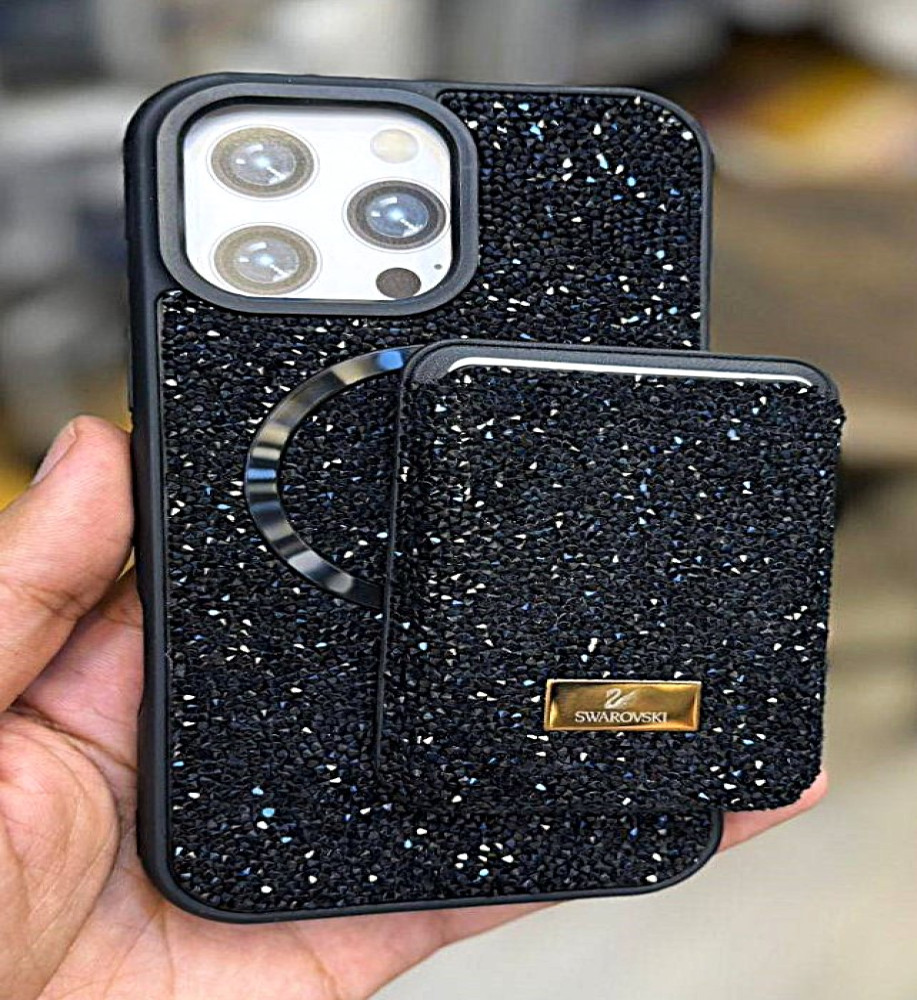 SWAROVSKI rhinestone-covered case with attractive colors and a magnetic card holder, in addition to Mage Safe wireless charging support, compatible with iPhone 12 Pro Max