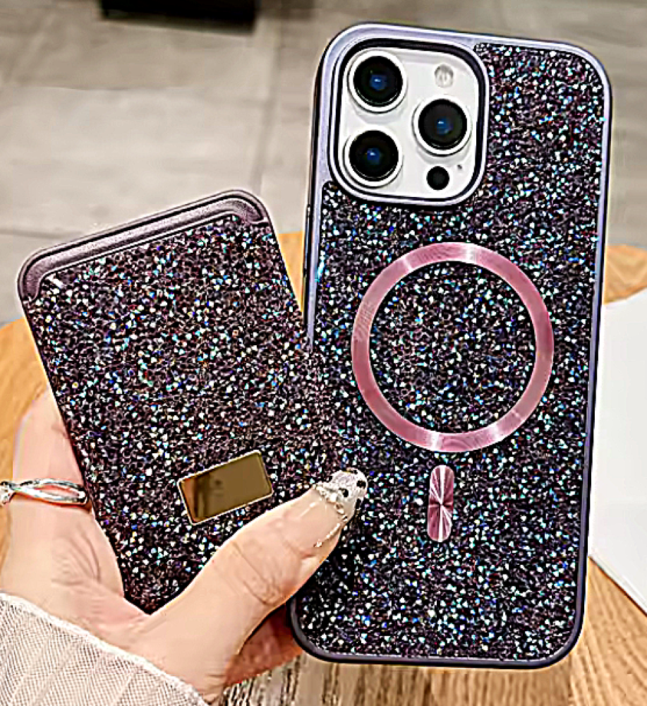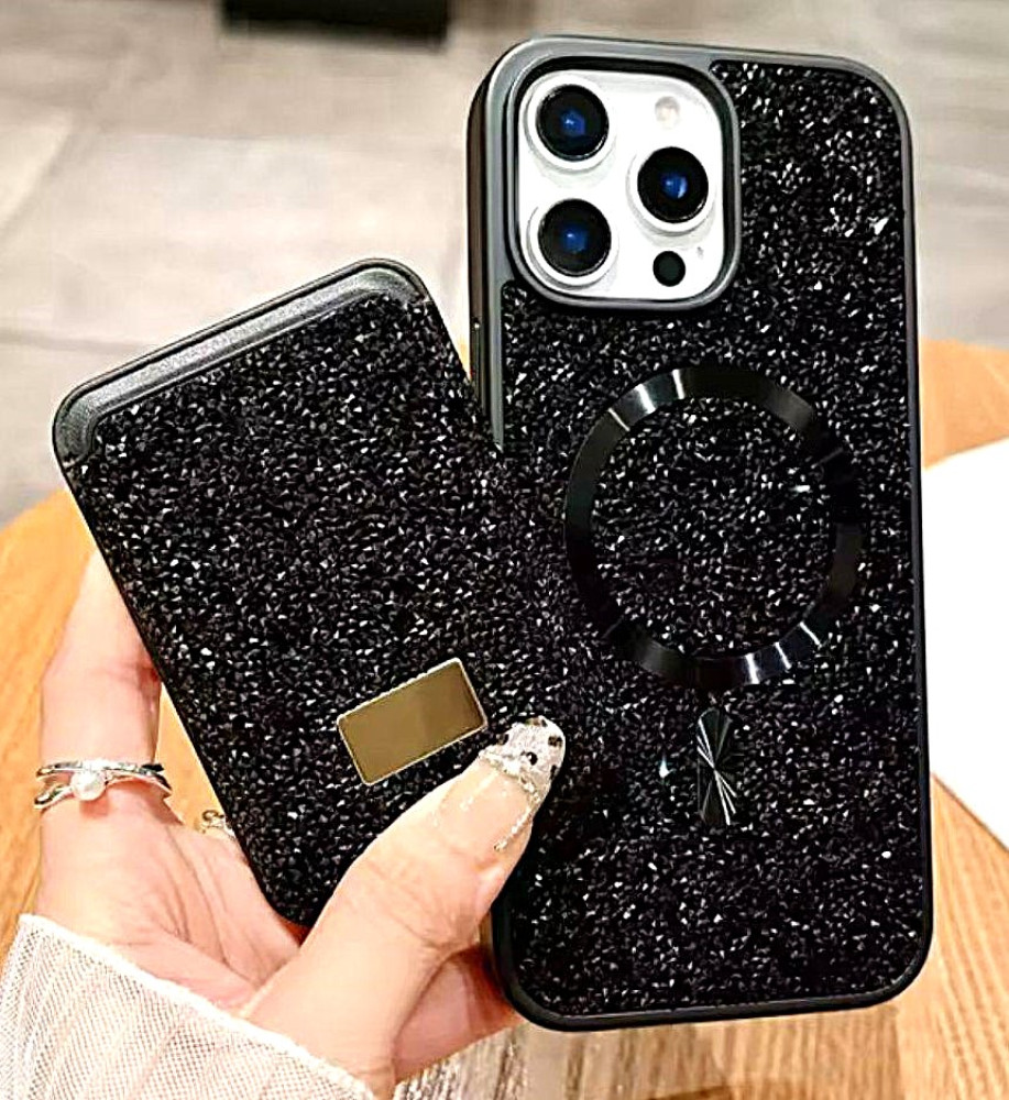 SWAROVSKI rhinestone-covered case with attractive colors and a magnetic card holder, in addition to Mage Safe wireless charging support, compatible with iPhone 16 Pro