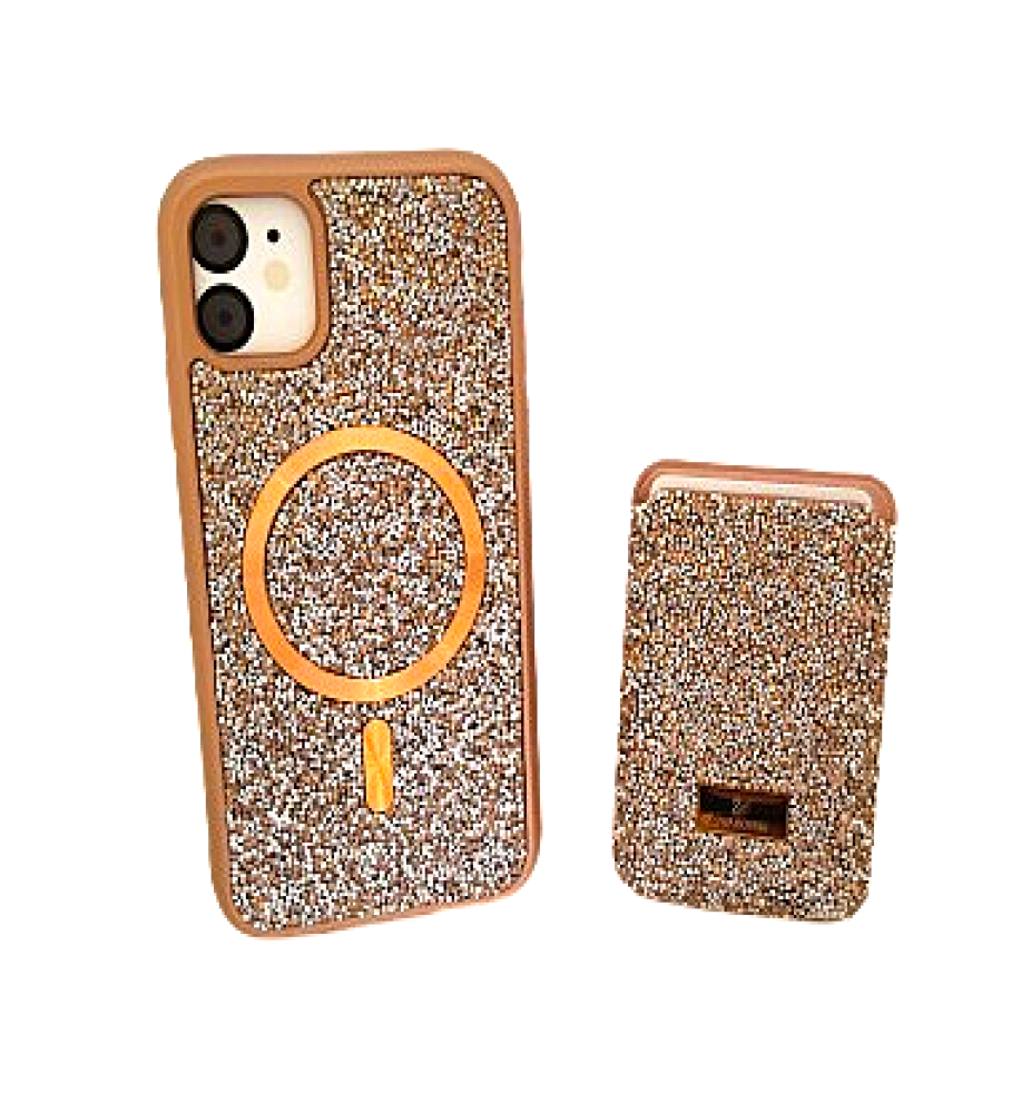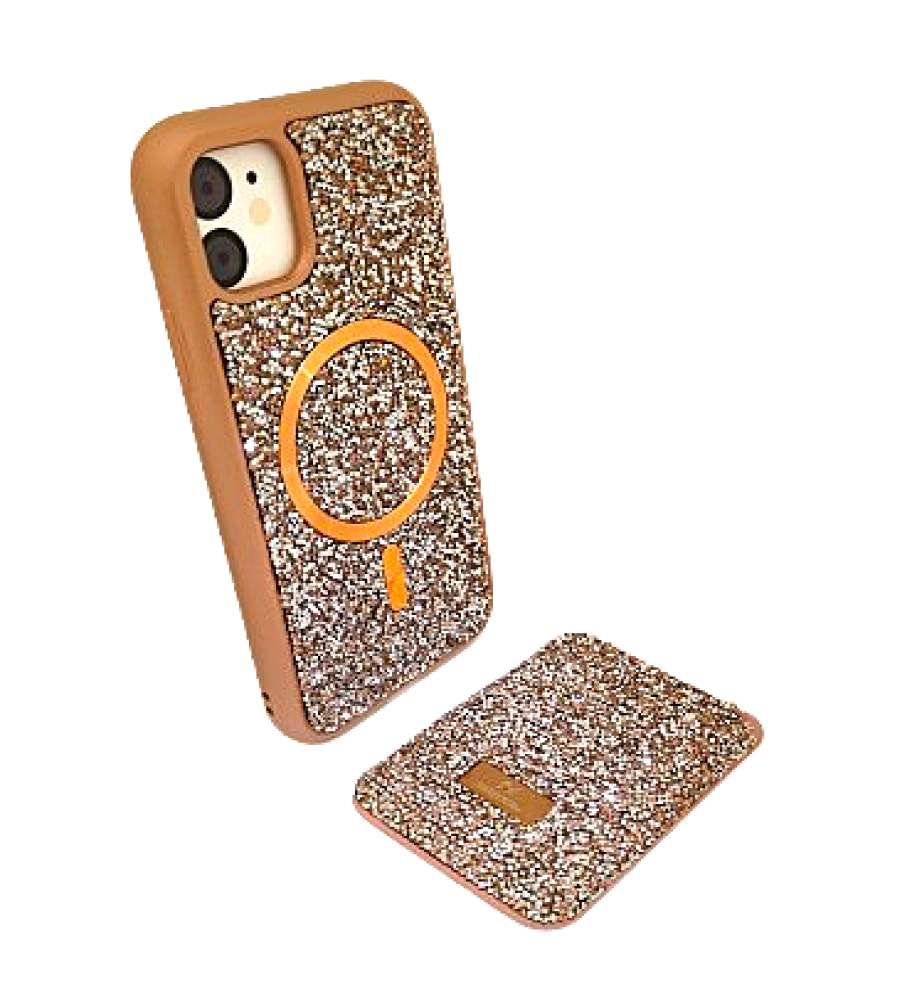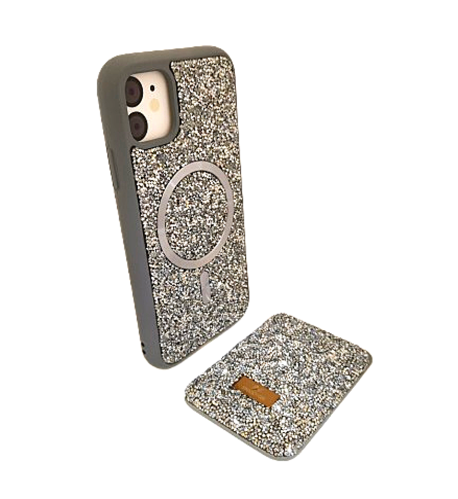 SWAROVSKI rhinestone-covered case with attractive colors and a magnetic card holder, in addition to Mage Safe wireless charging support, compatible with iPhone 11