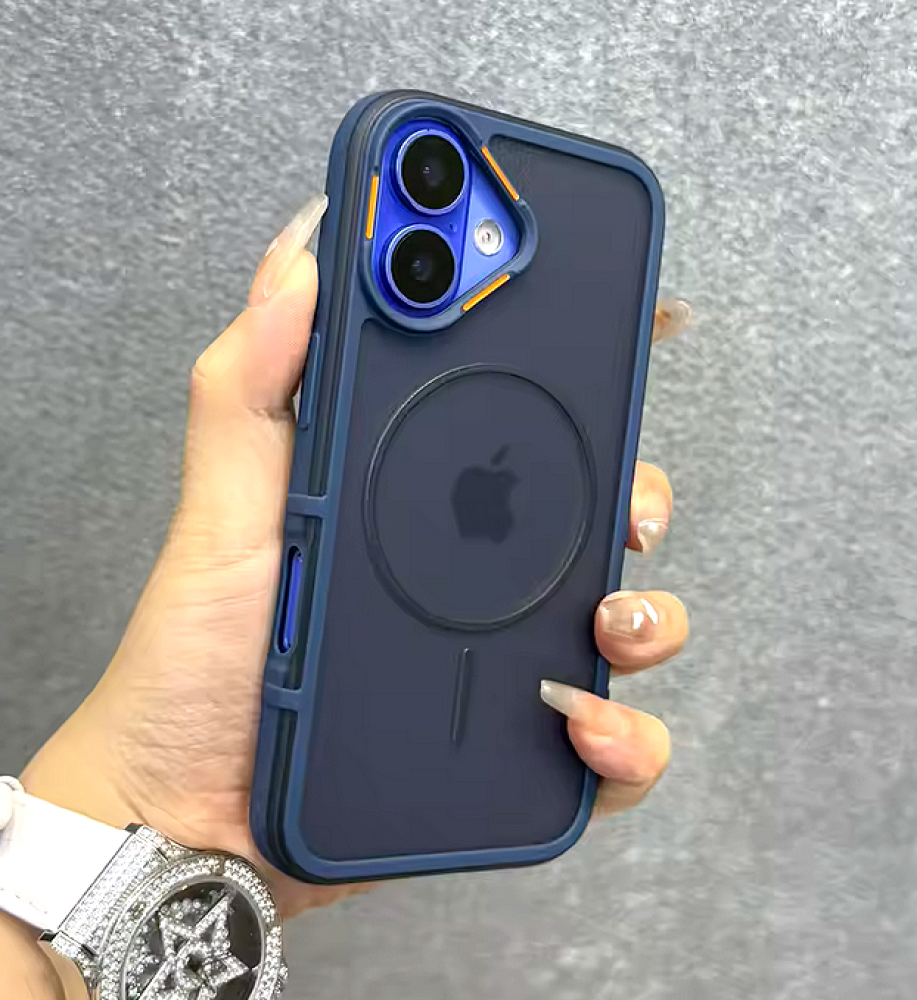 A strong and elegant protective case with magnetic charging, shock-resistant, anti-fingerprint, with elegant transparency and a prominent frame in a chic color to protect the camera and screen, compatible with iPhone 16 PLUS.