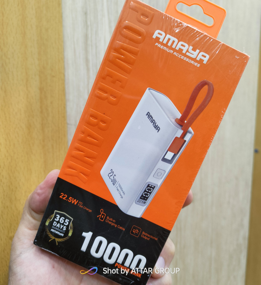 Amaya APB-WFD50 Portable Power Bank, 22.5W, 10000mAh with Cable