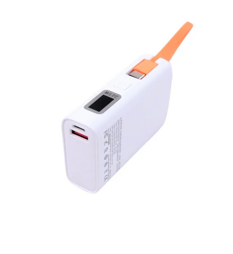 The power bank comes with an included charging cable, which can be a USB-A to USB-C or USB-C to USB-C cable, depending on the device you need to charge. This convenience eliminates the need for additional cables when you are on the go.