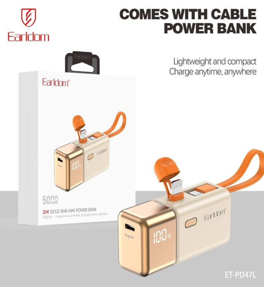 Earldom PD47 Power Bank 5000mAh Mini 2-in-1 with 22.5W Fast Charging, Compact and Portable Design for Mobile Phones and Smart Devices