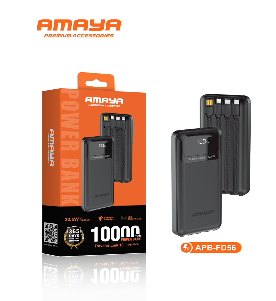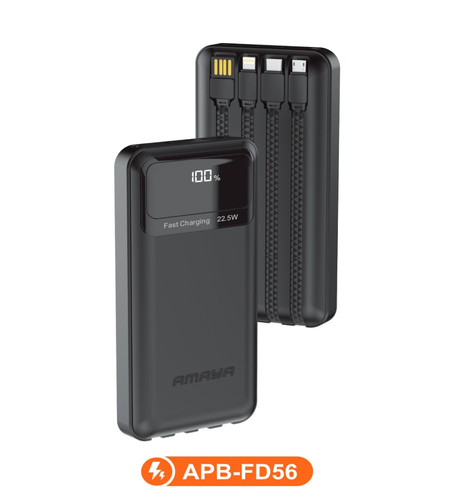 Amaya APB-FD50 10000mAh Power Bank with PD20W Fast Charging • 22.5W • Built-in Type-C & Lightning Cables • Multiple Ports