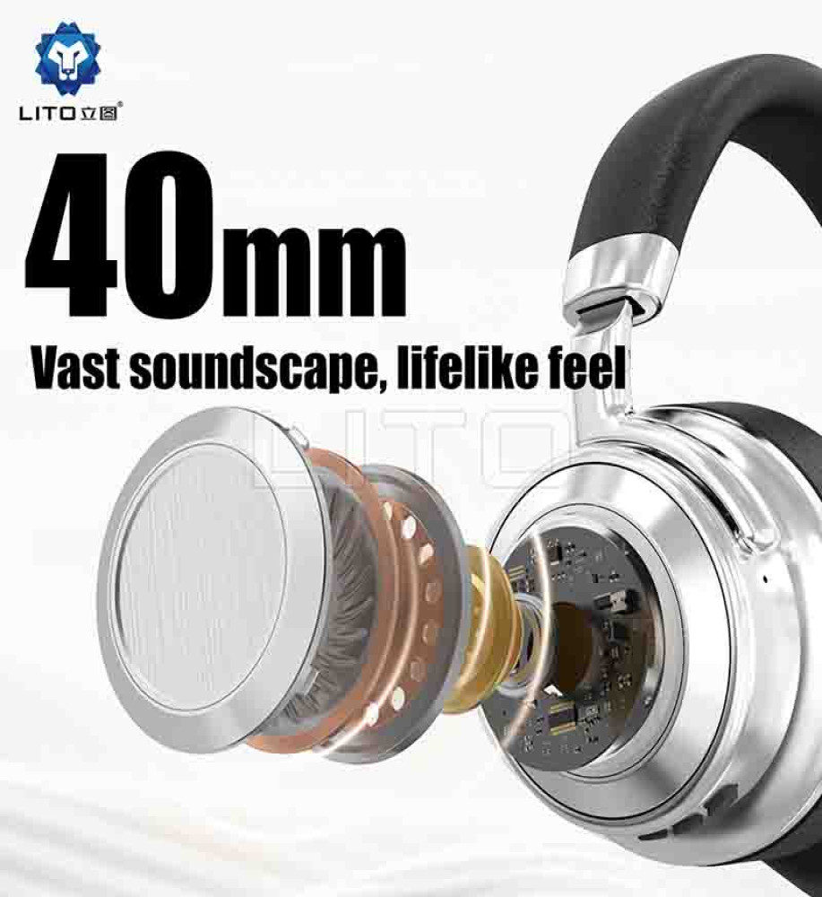 Lito LE02 — Metal headphones with 25dB ANC isolation, Hi-Fi sound with 40mm drivers, Bluetooth 5.4 (Class 1), up to 40 hours of playtime, 1.5-hour fast charging