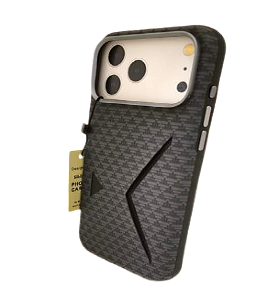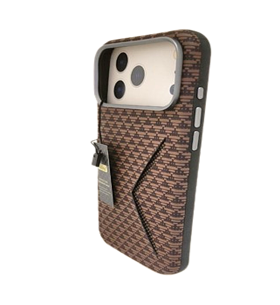 An iPhone case with an attractive design, featuring a hidden pocket inside for storing cards, made of durable, shock-resistant materials, compatible with iPhone 17 Pro Max.