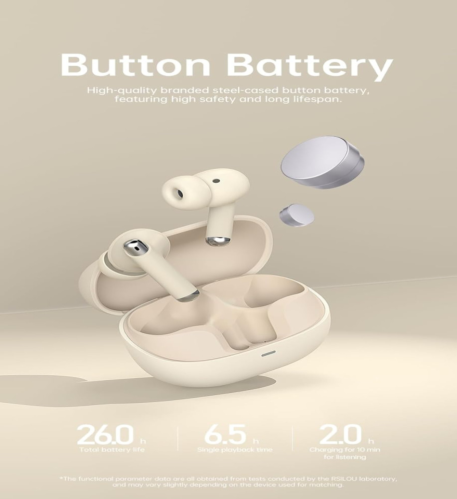 RSILOU R3008 Wireless Bluetooth 5.3 Earbuds – 26 Hour Battery Life, 6.5 Hour Playtime, Hi-Fi Sound with 13mm Speakers, Touch Controls, Type-C Fast Charging