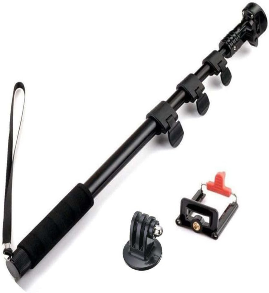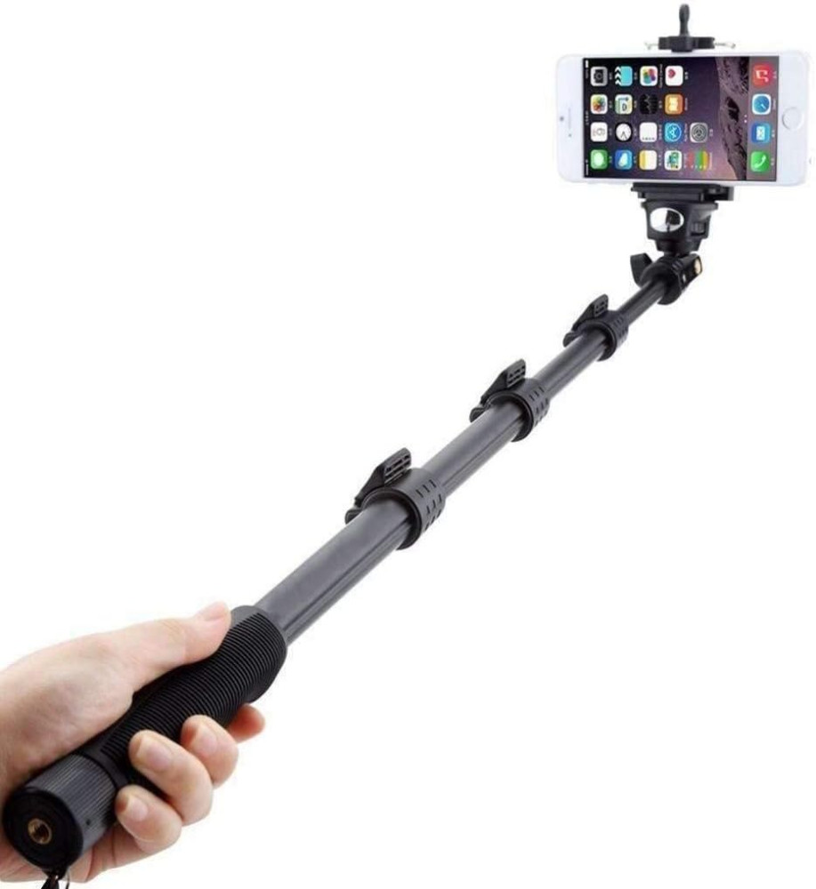 Taking self-portraits and videos has never been easier! Photograph and video yourself anywhere! Perfect for Travelling, Video Diaries, Video Blogging, Hiking/Camping, Weddings, Parties, Beaches, Mountains, Concerts, Aerial Photos, Sports Events. Ajustable phone adapter fits all phone width less than 8.5 cm and with soft interior so as not to scratch your cellphone. Adjustable ball head and thumb screw of monopod locks for multiple angle shooting with 180 degree position. Lightweight with sturdy non-slip grip. 100% brand new. Superior quality and supports all brands of mobile phones. Features: Material: Stainless Steel Colour: Black Capacity: Maximum Load upto 500gms Flex Height: 20-102 cms. Flex Sections: 7 Compatibility: Android 3.0 or above and ios 5.0 and above built-in bluetooth shutter just connect via blutooth and click no need of remote control. Take amazing photos and videos of yourself and group and capture the fun, excitement and priceless memories with a selfie stick. Extendable handheld self-portrait monopod.